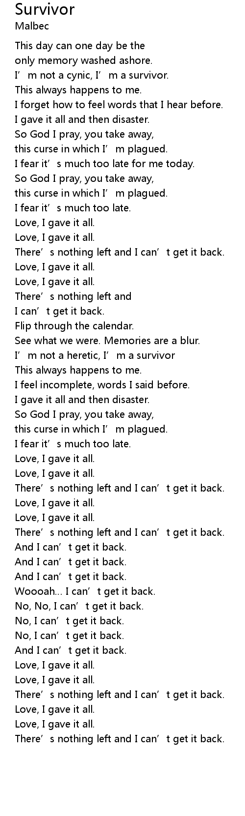 | Song | Survivor |
