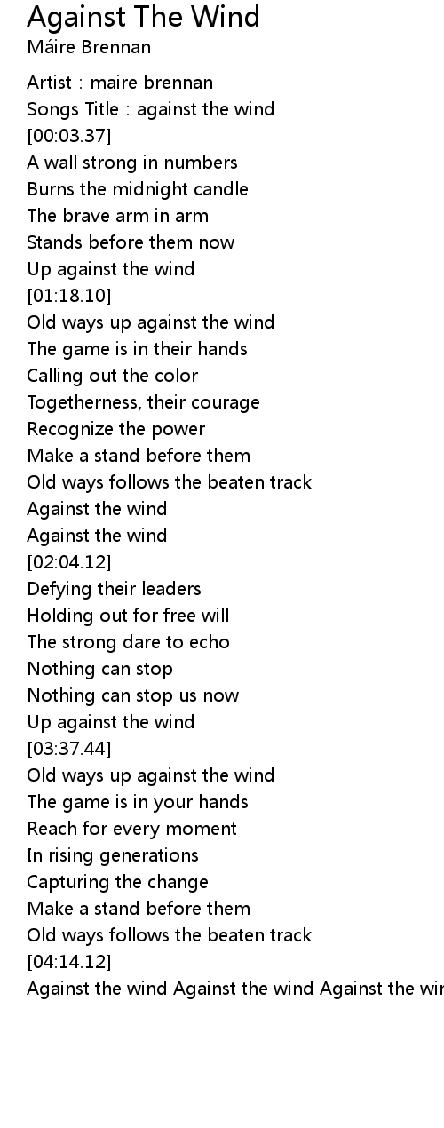 | [04:16.50] | Against the wind Against the wind Against the wind Against the wind |