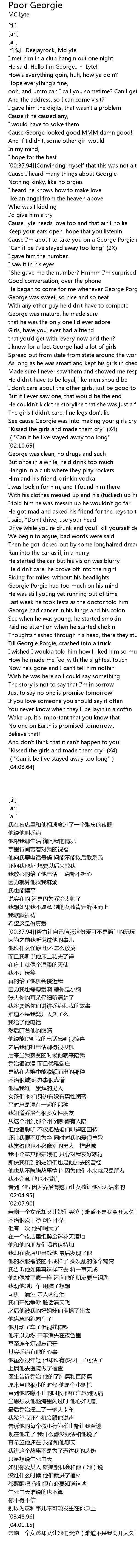 | [00:12.66] | He said, Hello I'm George.. hi Lyte! |