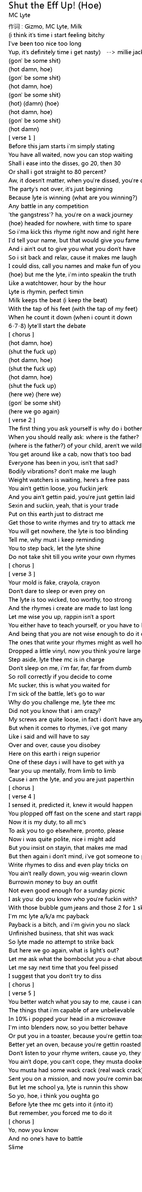 | Song | Shut the Eff Up! (Hoe) |