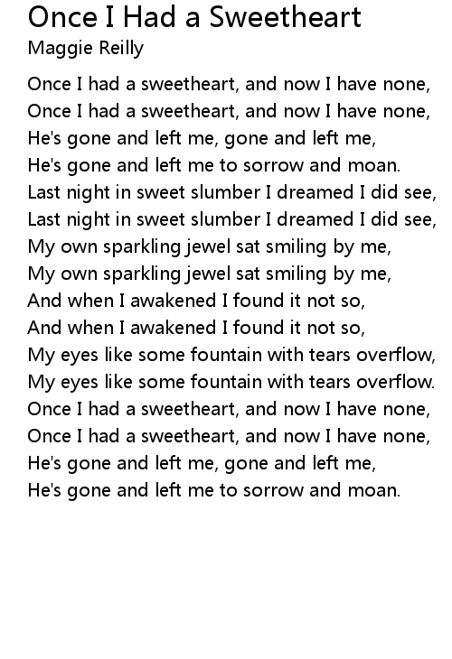 Once I had a sweetheart, and now I have none, |
