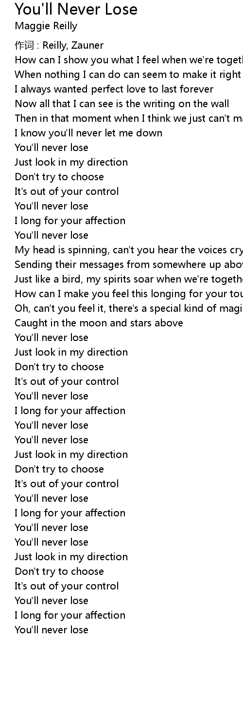 | Song | You'll Never Lose |