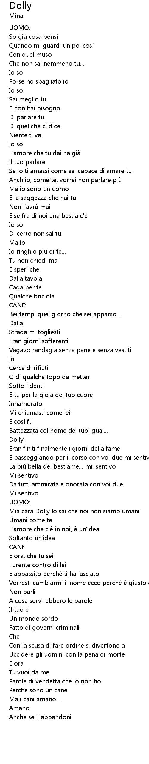 | Mia cara Dolly lo sai che noi non siamo umani | |