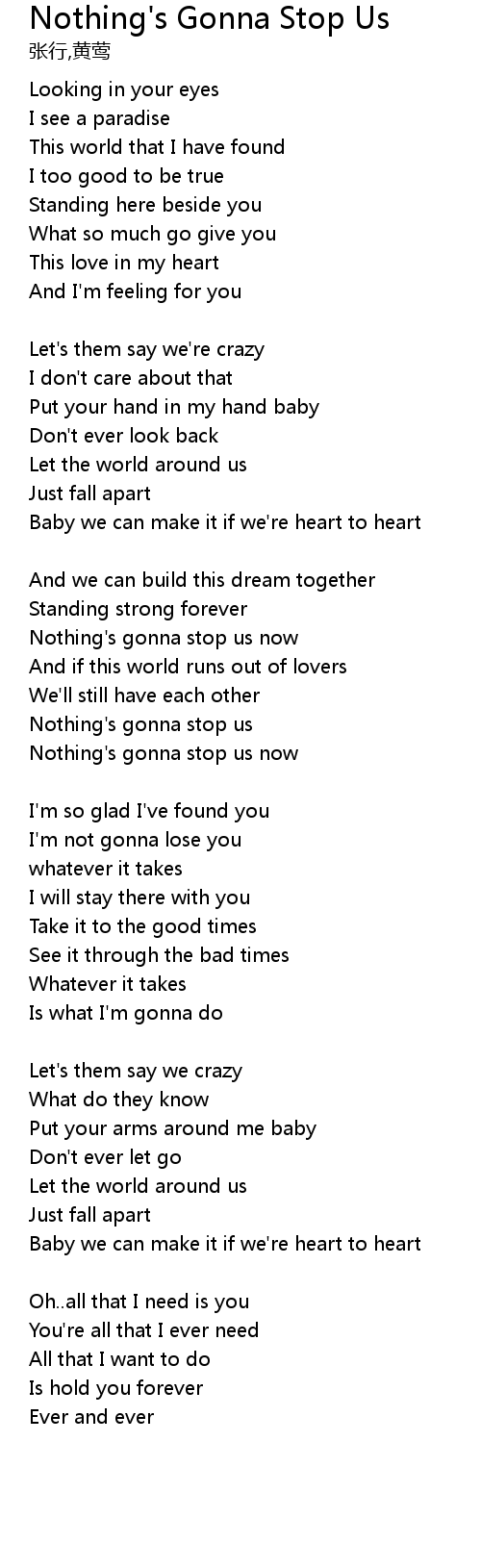 | Nothing's gonna stop us | |