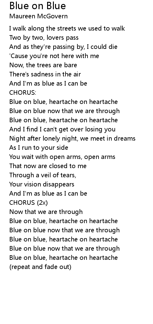 Blue on blue, heartache on heartache |