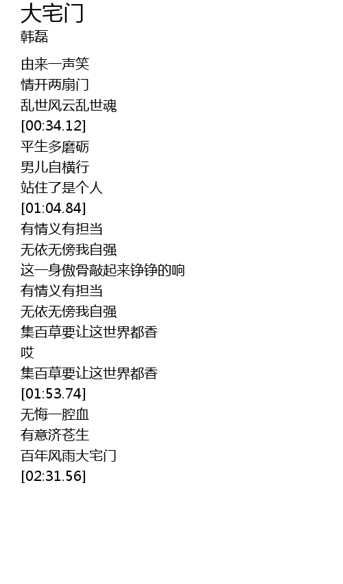 | [02:16.47] | bǎi nián fēng yǔ dà zhái mén |