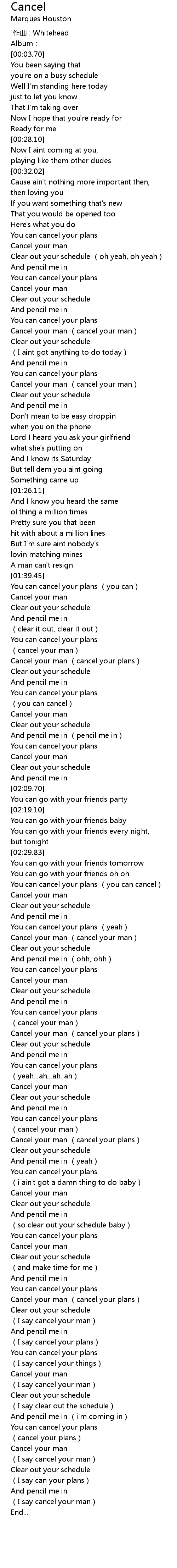 | [03:01.04] | Cancel your man (cancel your plans) |