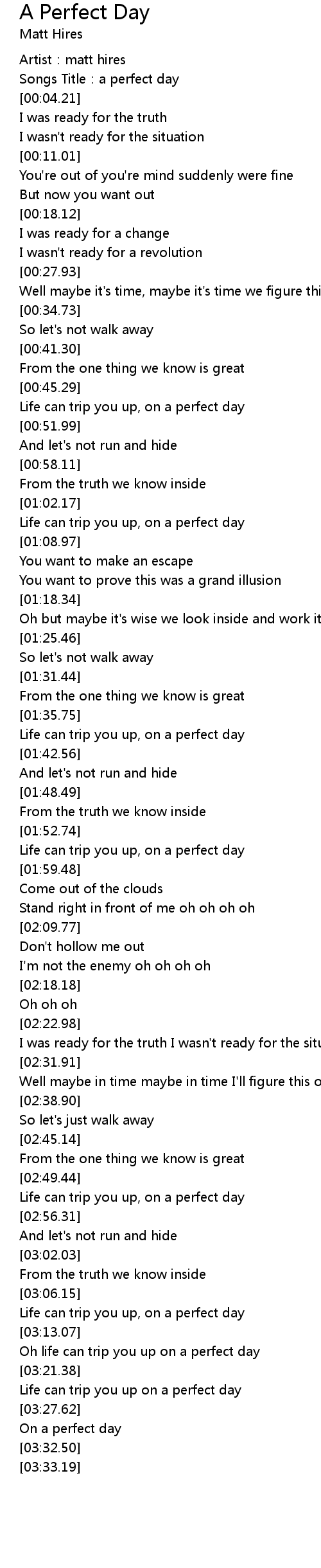 | [00:46.97] | Life can trip you up, on a perfect day |