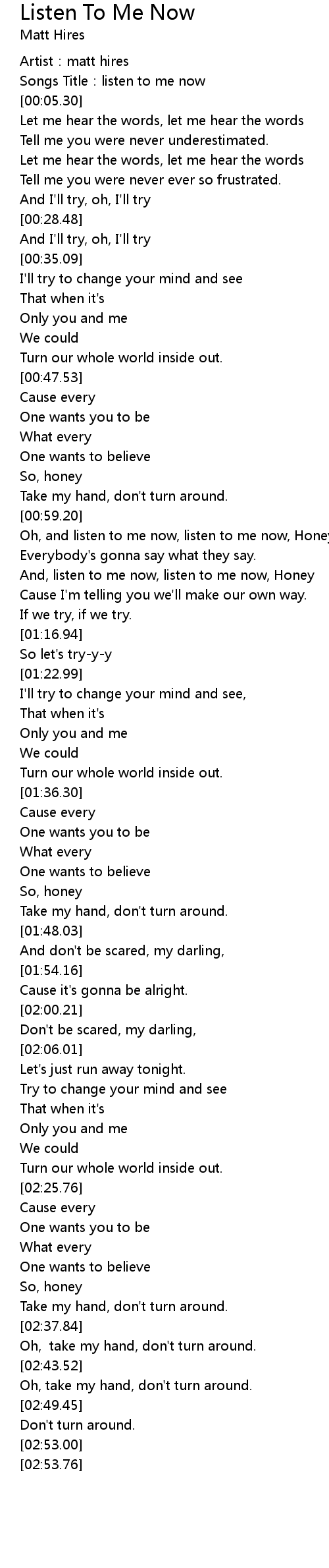 | [01:07.00] | And, listen to me now, listen to me now, Honey |