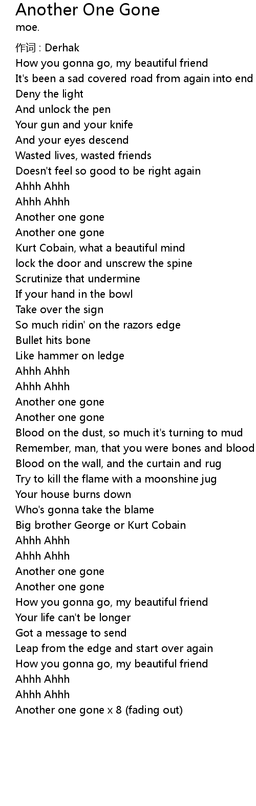 | Another one gone x 8 (fading out) |