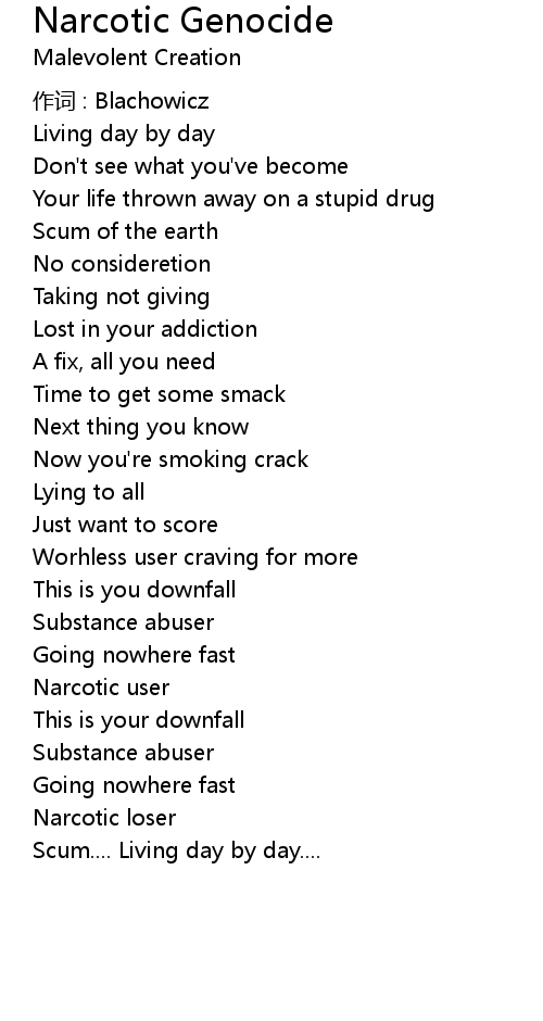 | Song | Narcotic Genocide |