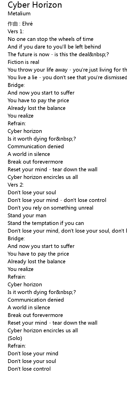 | Don' t lose your mind, don' t lose your soul, don' t lose control | |