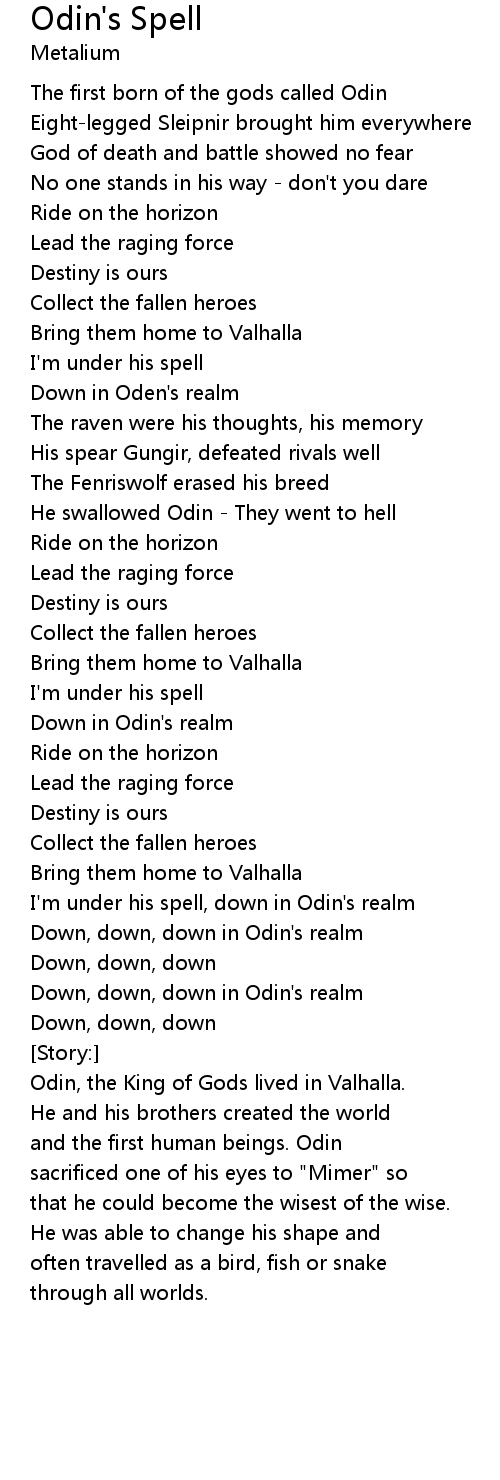 I'm under his spell, down in Odin's realm |