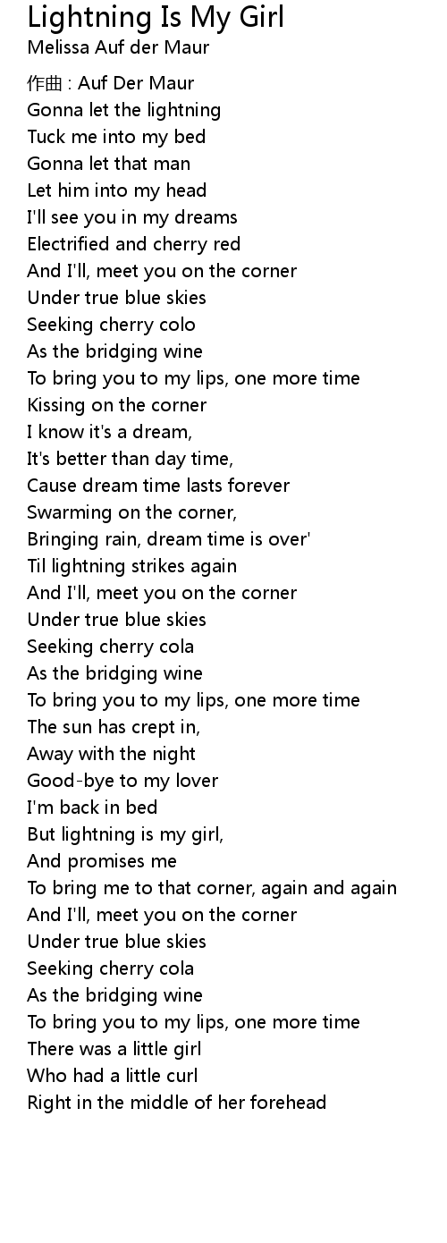 | But lightning is my girl, | |