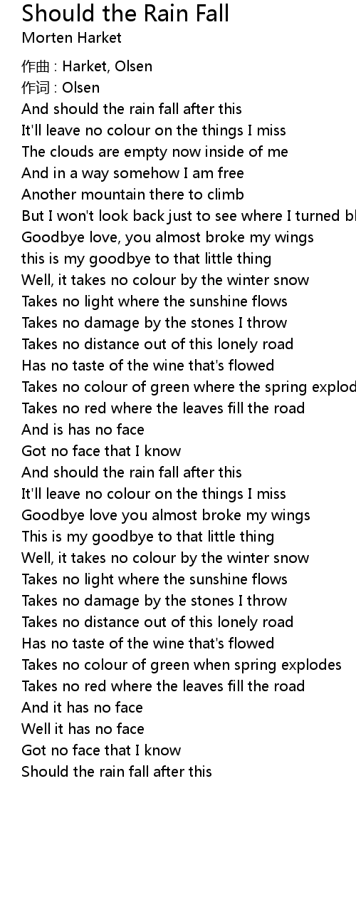 | Song | Should the Rain Fall |