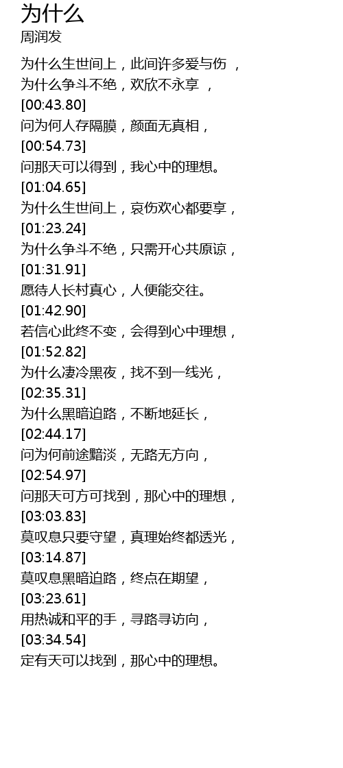 | [02:27.45] | 为什么凄冷黑夜,找不到一线光, |