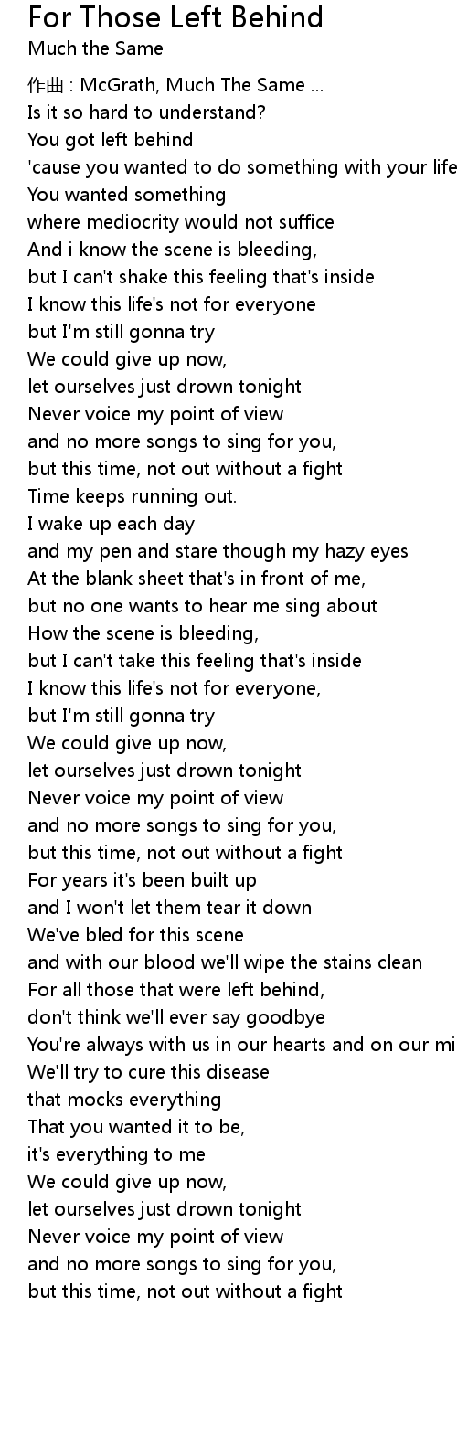 | For all those that were left behind, | |