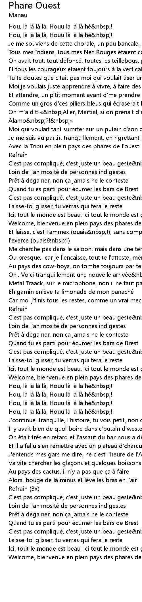 | Song | Phare Ouest |