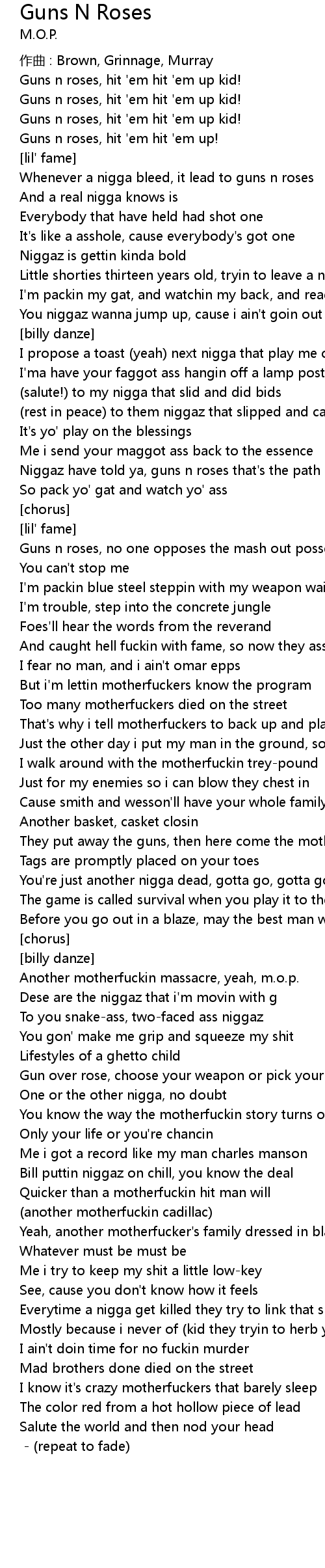 | Whenever a nigga bleed, it lead to guns n roses | |