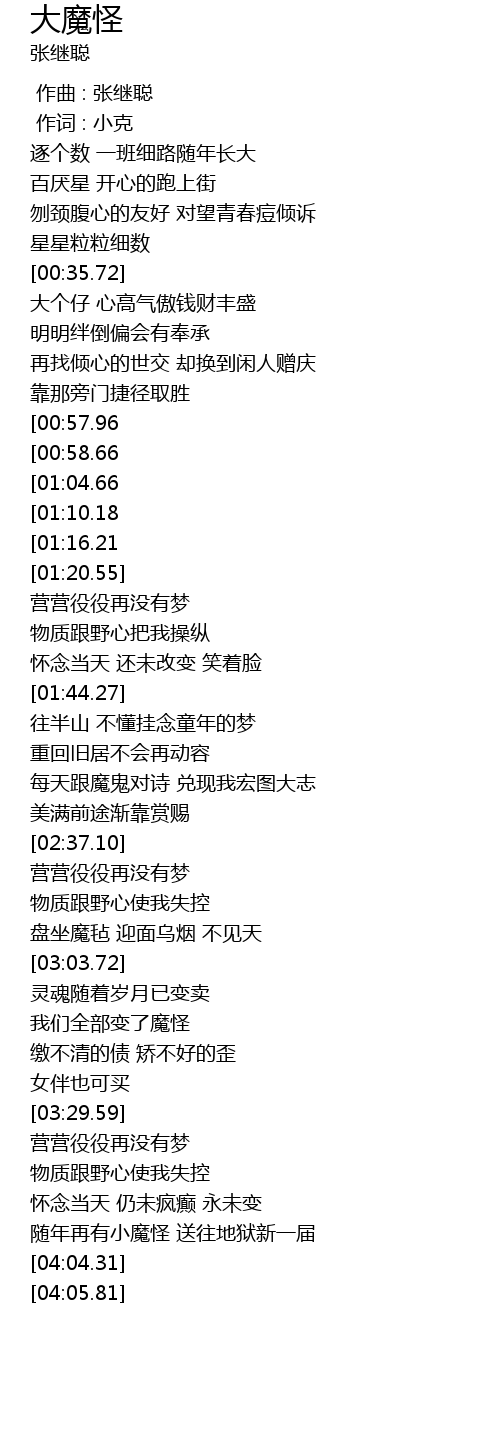 | [02:20.60][01:04.66] | 我们全部变了魔怪 |
