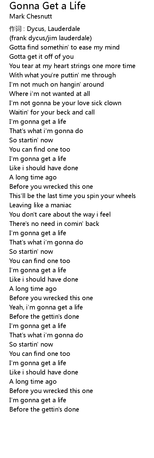 | Yeah, i' m gonna get a life | |