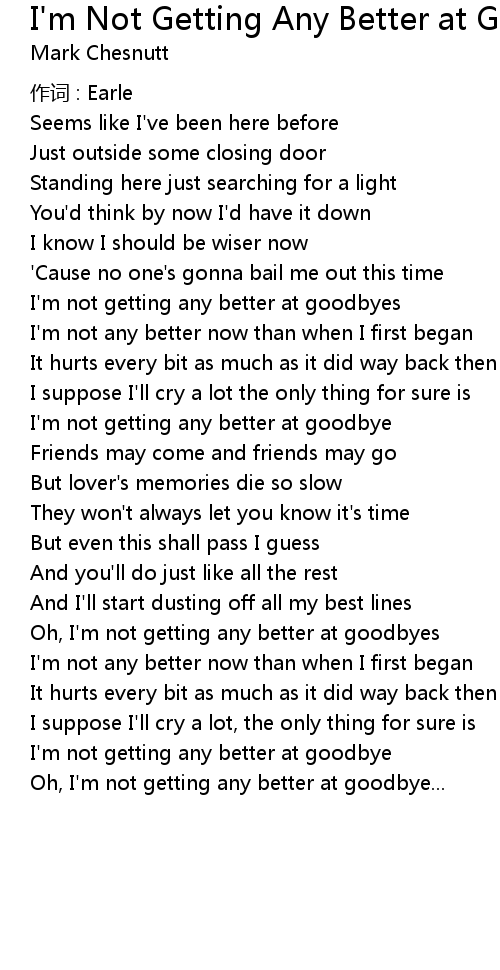 | Song | I'm Not Getting Any Better at Goodbyes |
