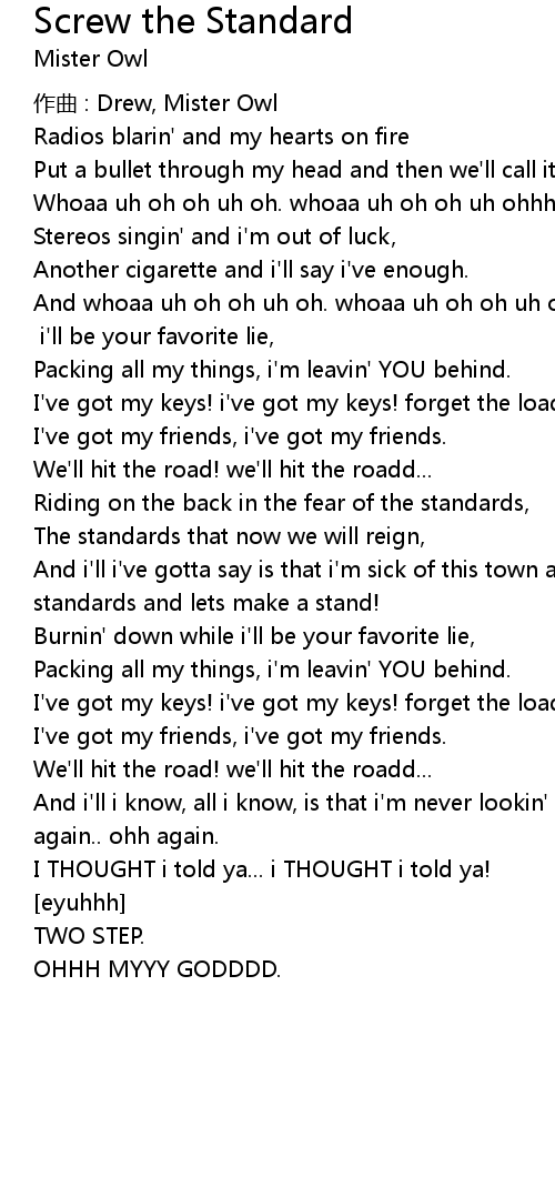 | Song | Screw the Standard |