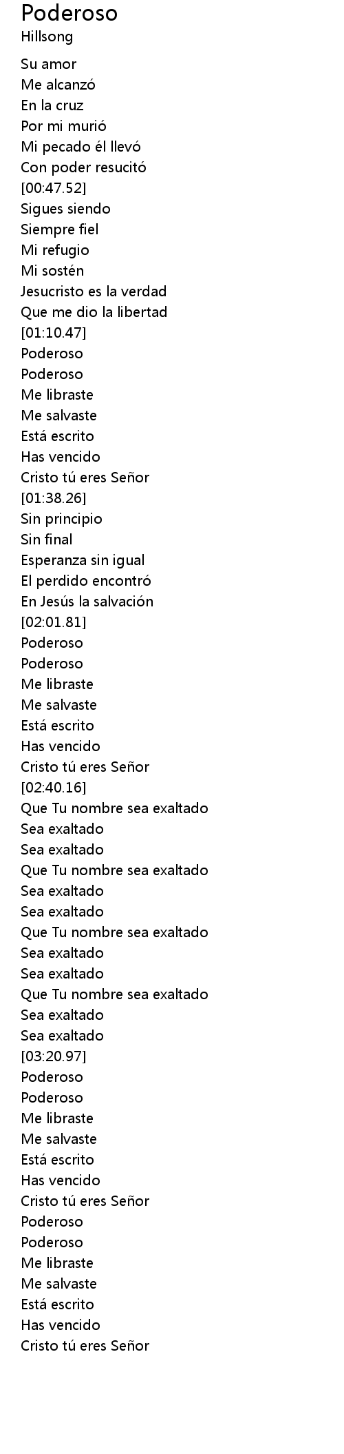 | [03:00.81] | Que Tu nombre sea exaltado |