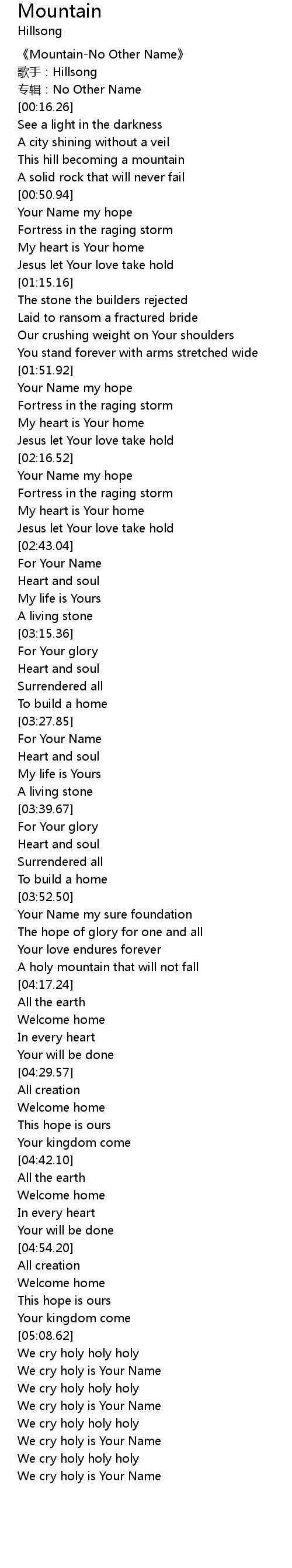 | [05:49.65] | We cry holy is Your Name |