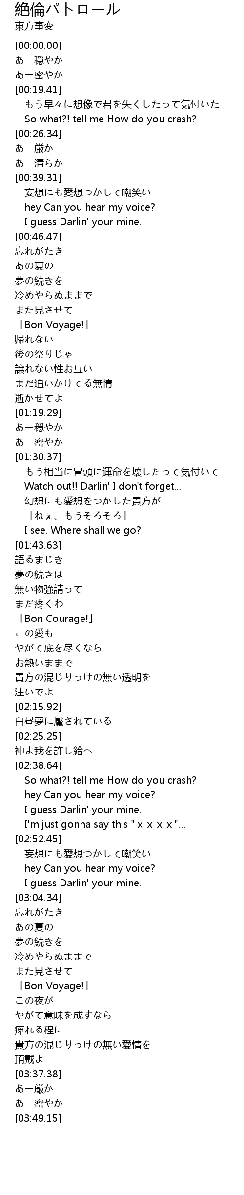 | [01:30.61] | もう相当に冒頭に運命を壊したって気付いて |