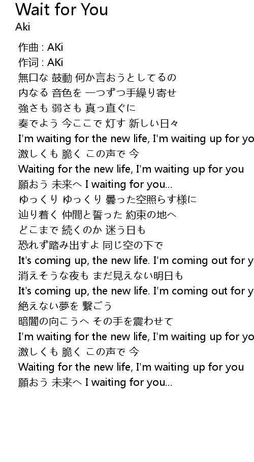 | [01:15.893] | I' m waiting for the new life, I' m waiting up for you |