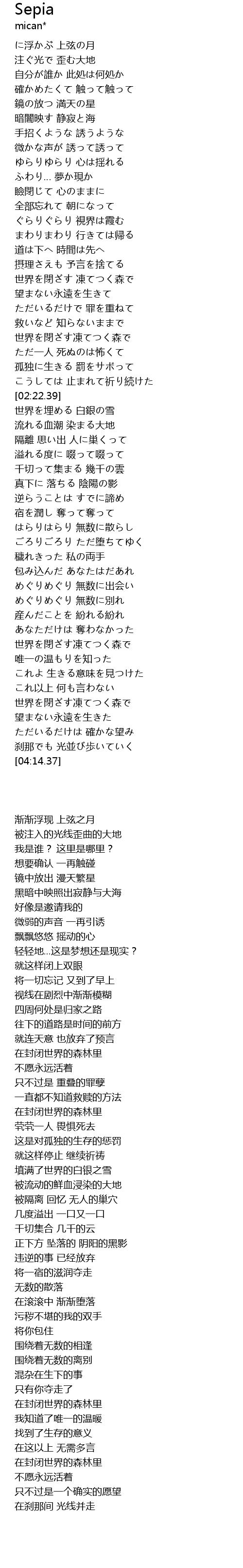 | [02:42.47] | 隔離 思い出 人に巣くって |