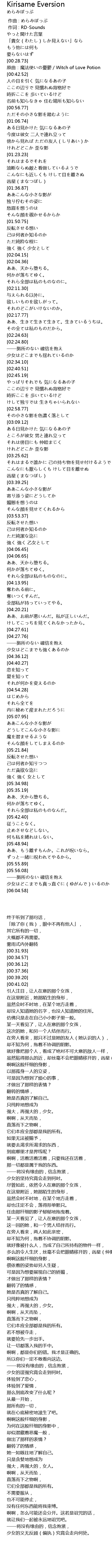 | [00:36.12] | 原曲:魔法使いの憂鬱/Witch of Love Potion |