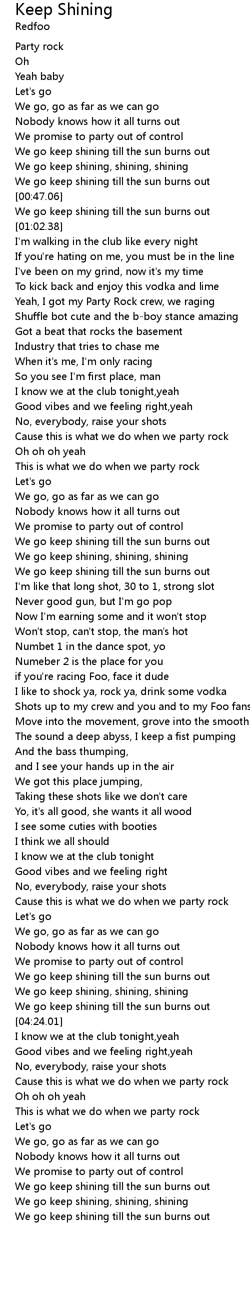 We go keep shining till the sun burns out |