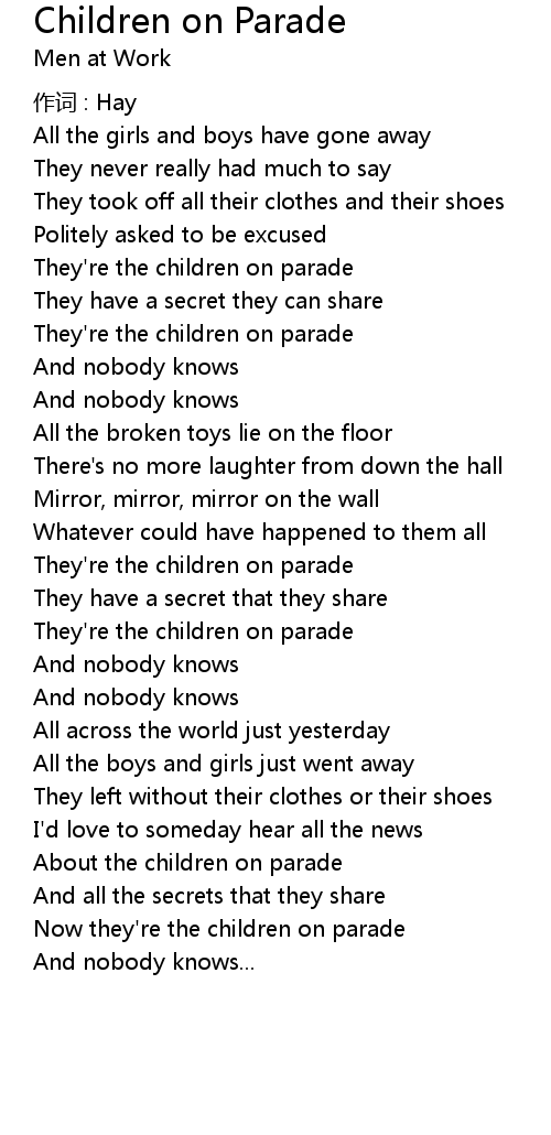 | Now they're the children on parade | |