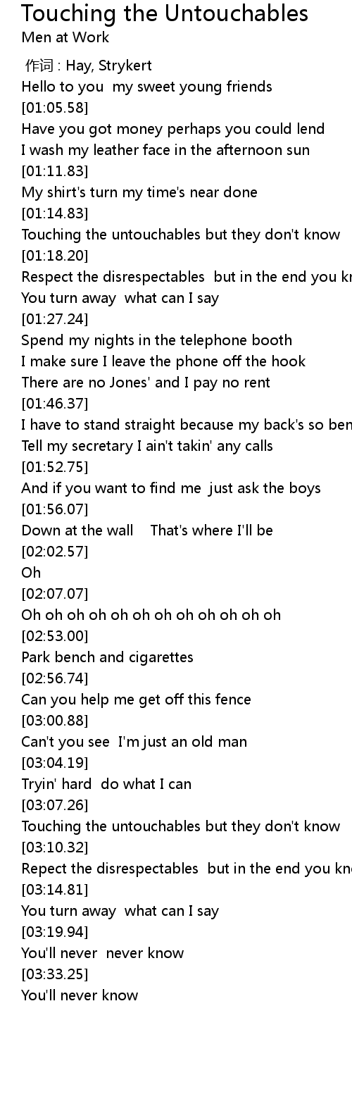 | [03:08.00] | Touching the untouchables but they don' t know |
