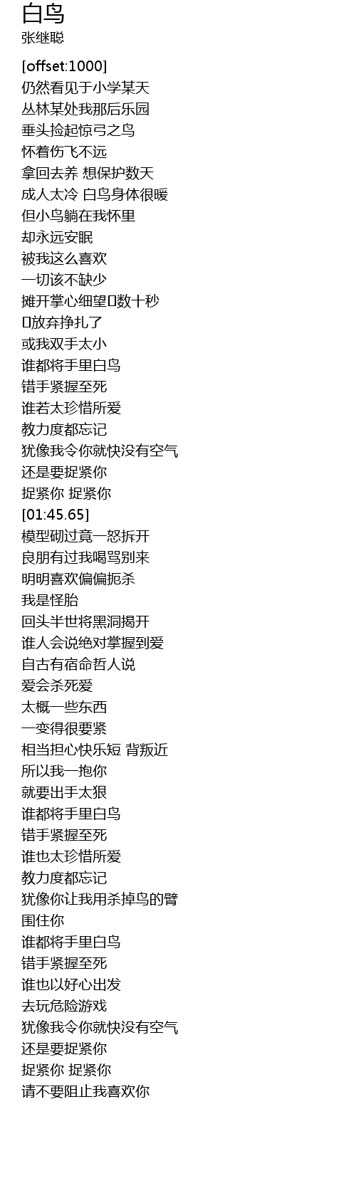 | [02:28.72] | 谁都将手里白鸟 |