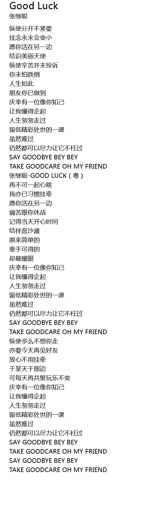| [01:17.800] | zhāng jì cōng GOOD LUCK yuè |
