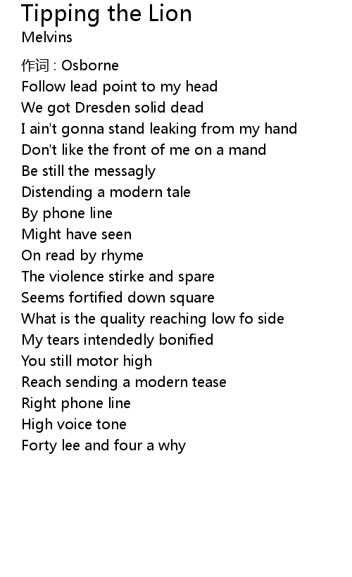 | Song | Tipping the Lion |