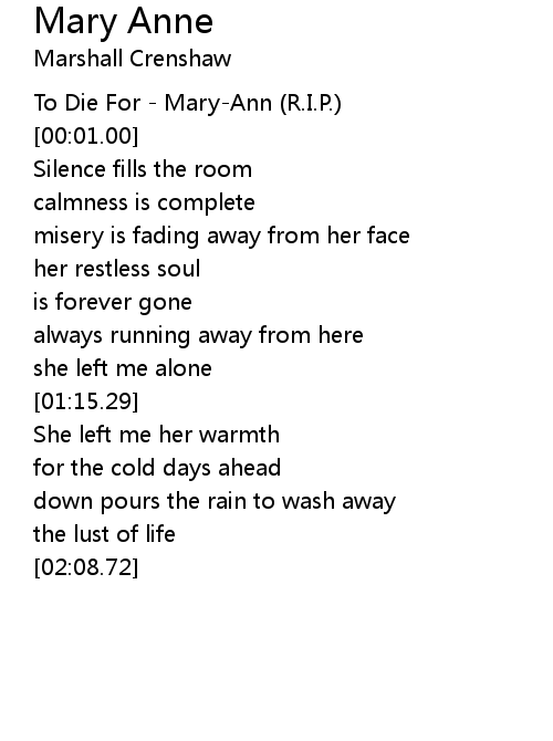 | [00:00.00] | To Die For - Mary-Ann (R.I.P.) |