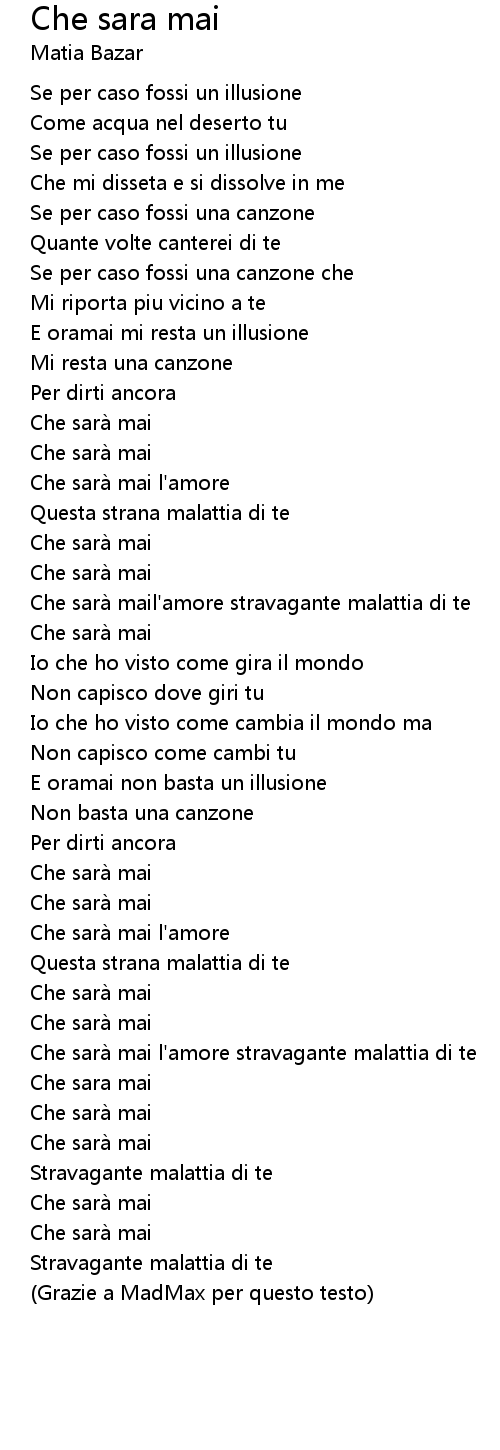 | Che sara mai l' amore stravagante malattia di te | |