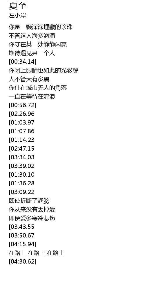 | [04:06.01][03:43.55] | 我看着你站在夏天到来的路口 |
