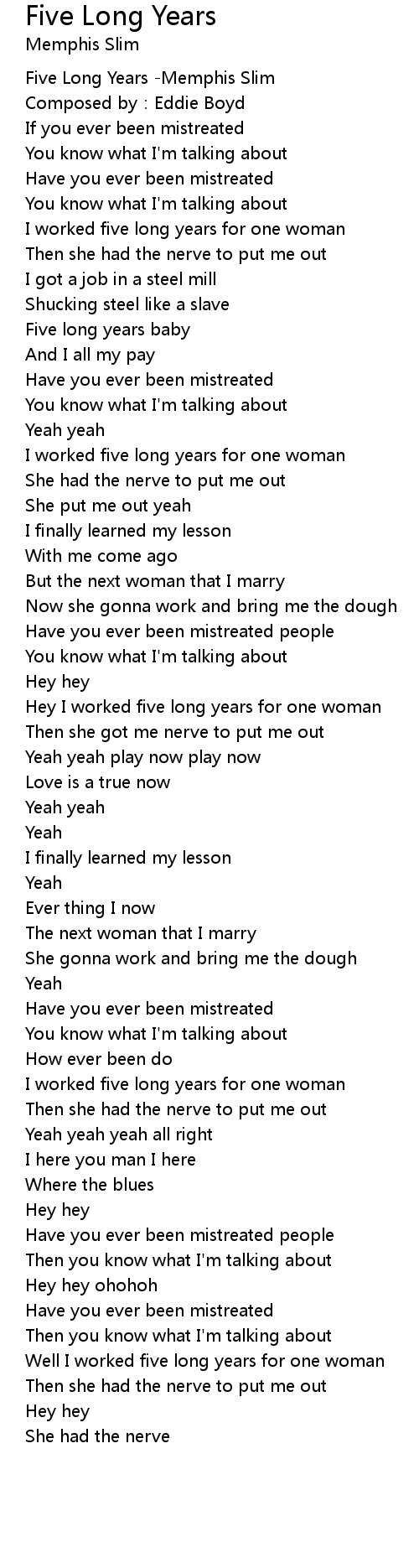 | Song | Five Long Years |