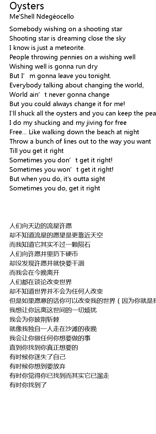 | Song | Oysters |