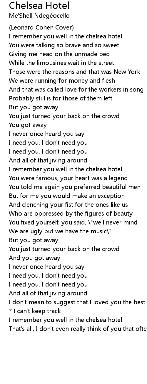 I remember you well in the chelsea hotel |