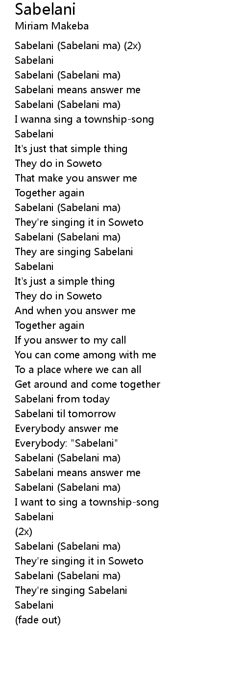 Sabelani Lyrics