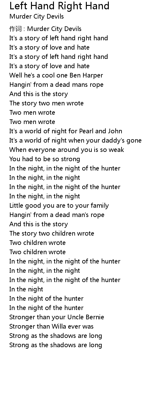 | Song | Left Hand Right Hand |