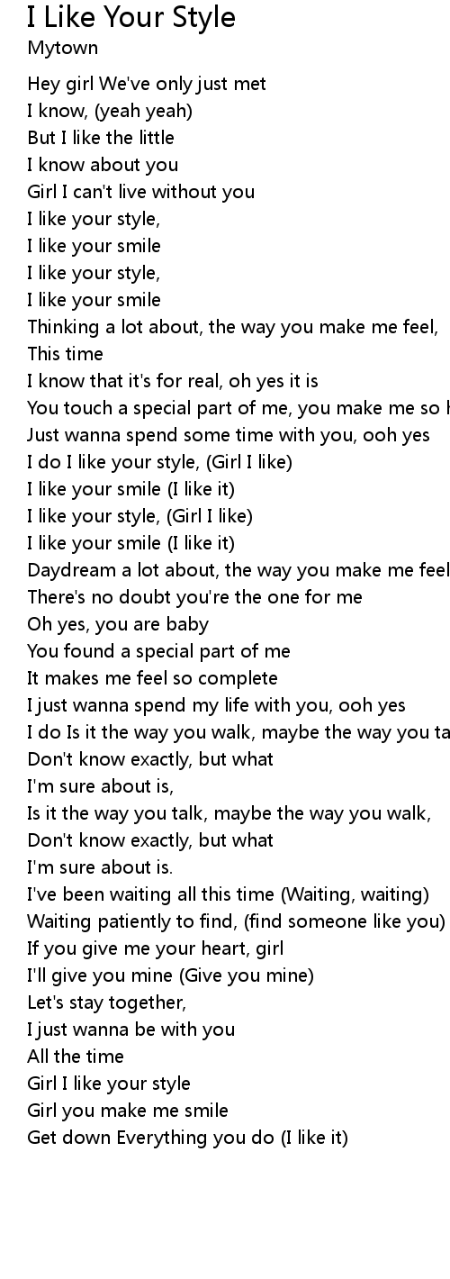 | I do I like your style, (Girl I like) | |