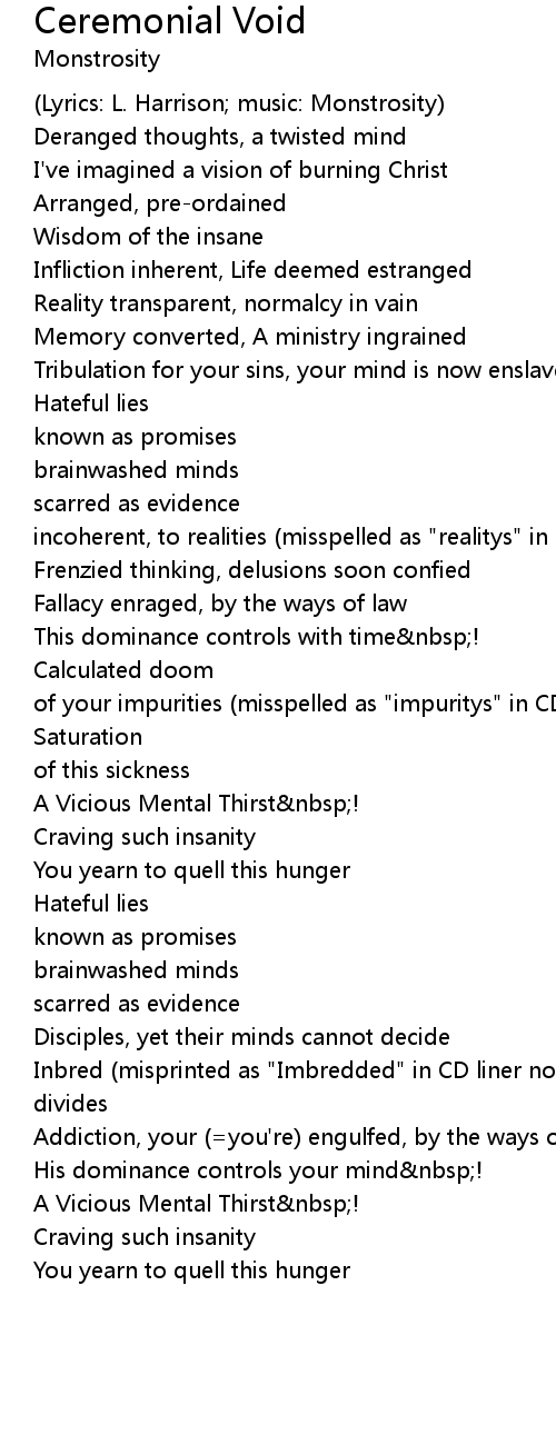 (Lyrics: L. Harrison; music: Monstrosity) |