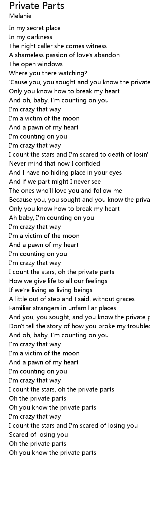 I count the stars, oh the private parts |